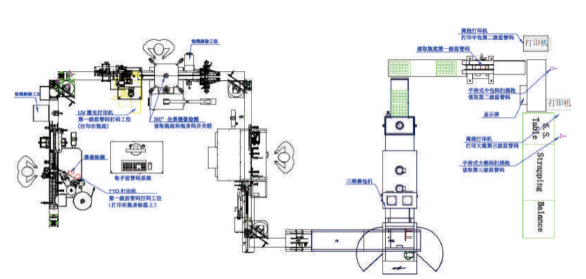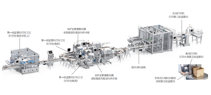 步骤3:360°检测完成再经过贴说明书和裹包工序后进入层采工序。